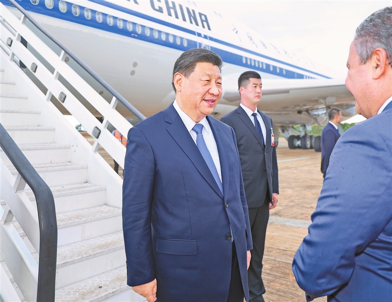 新华社巴西利亚11月19日电 (记者宿亮、陈昊佺)当地时间11月19日下午,国家主席习近平乘专机抵达巴西利亚,开始对巴西进行国事访问。