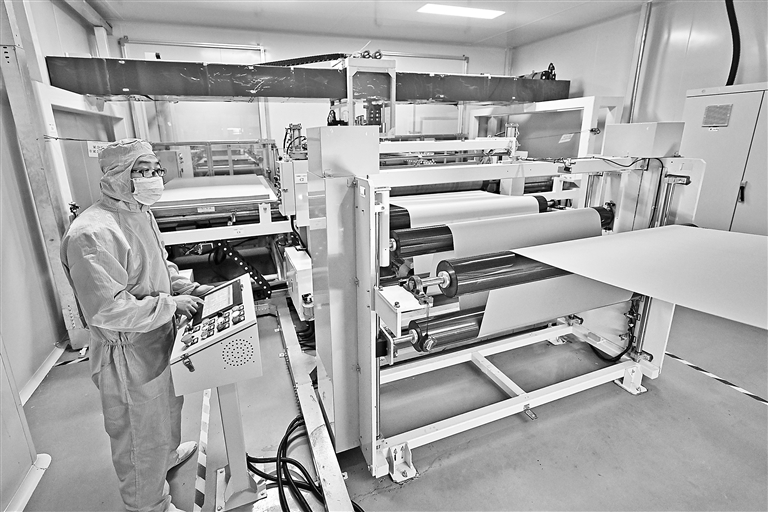 11月18日,在江西省航宇新材料股份有限公司的无尘车间内,工人正在生产金属铝基板。今年前三季度,宜春市袁州区电子信息产业规模以上工业企业实现营业收入13.9亿元,同比增长19.3%。四季度以来,不少企业加紧生产,冲刺全年目标任务。