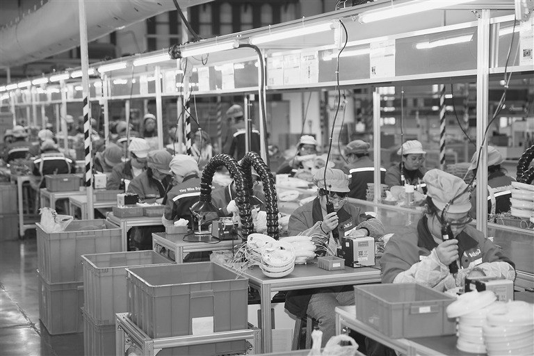 11月21日,位于九江经开区的美琪(九江)婴儿用品有限公司厂房内,员工正在生产线上忙碌。今年以来,该公司通过智能化、数字化转型,不断推新品、拓市场,呈现良好发展态势,1至10月,该公司出口额达3337万美元,预计全年出口增长10%。