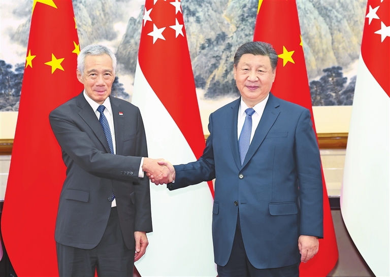 习近平积极评价李显龙担任新加坡总理期间带领新加坡取得显著成就,并长期关心和支持中新合作。习近平指出,去年我们共同确立了中新全方位高质量的前瞻性伙伴关系,为两国关系发展明确了战略方向。明年是中新建交35周年,双方要密切高层往来,进一步加强发展战略对接,深化各领域合作,为两国人民带来更多福祉,为地区和平繁荣作出更大贡献。