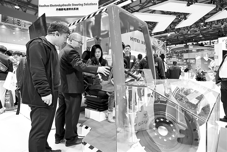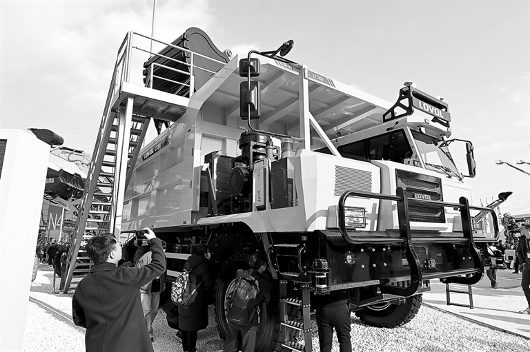 11月26日至29日,上海国际工程机械、建材机械、矿山机械、工程车辆及设备博览会在上海新国际博览中心举行。中联重科、浙江鼎力、卡特彼勒等国内外知名机械企业携硬核机械产品亮相。 新华社发(陈浩明摄)