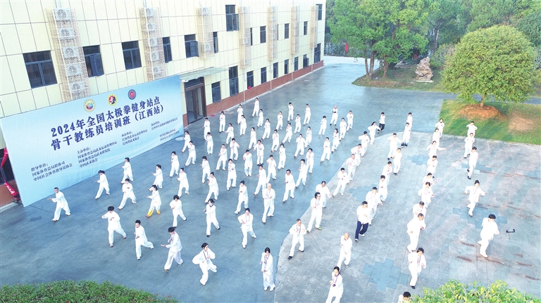 11月23日上午,2024年全国太极拳健身站点骨干教练员培训班(江西站)开班仪式在位于南昌经开区的中昌红网运动中心举行。活动邀请了高校武术教授和高段位太极拳传承人授课,每名骨干教练员都分外珍惜此次难得的培训机会,认真学习、积极交流。熊训芙摄