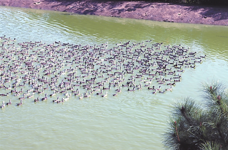 近年来,莲花县以“公司+农户”方式,鼓励百姓参与麻鸭养殖,为“十大赣菜”之一的莲花血鸭提供优质原材料。图为莲花县路口镇下垅村养殖户刘淼林散养的麻鸭。