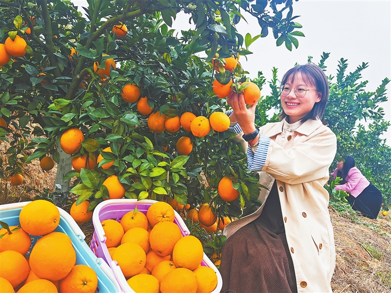 12月9日,宜春市袁州区西村镇大富种养专业合作社内,游客正在采摘脐橙。近年来,该区因地制宜调整产业结构,引导农民发展脐橙产业,促进农业增效、农民增收。本报全媒体记者 蔡颖辉摄