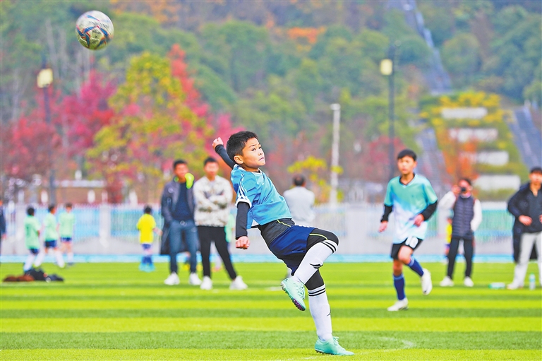 ▲12月9日,吉水县体育馆,足球小将正在绿茵场上奋力拼抢。当日,2024年吉安市“国家级、省级校园足球特色校”足球比赛在吉水县举行。特约通讯员 廖 敏摄