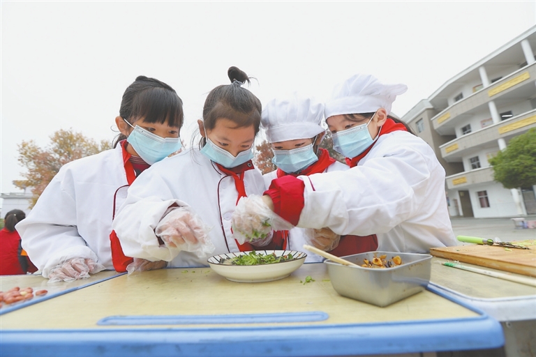 ◀12月10日,余干县乌泥镇中心小学学生正在进行生活技能比赛。近年来,该县围绕学生全面发展需求,积极开展劳动教育,引导学生爱劳动、勤劳动、善劳动。