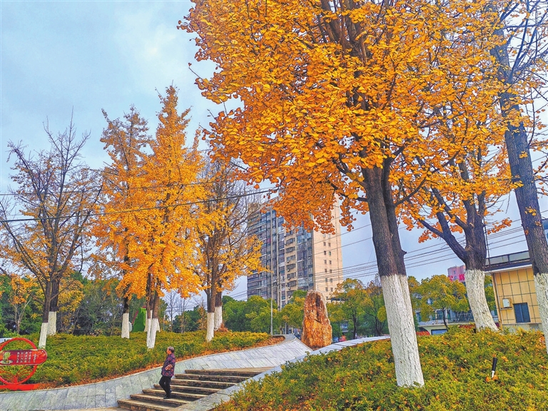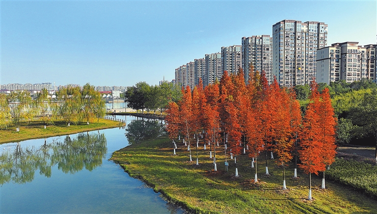 12月13日,分宜县万年湖湿地公园,成片的银杏、乌桕、水杉、红枫等树木色彩斑斓、满目缤纷,犹如一幅油彩画镶嵌在湿地,美不胜收。特约通讯员 袁建兵摄