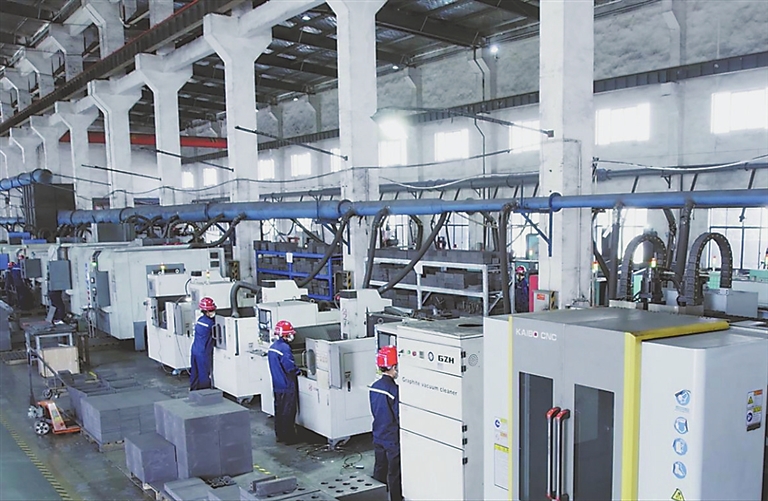 在宁新新材生产车间,一台台机械臂灵活操作,加工石墨材料精准高效。据田家利介绍,制造生产手机曲面屏,也要用到含石墨材料的3D玻璃热弯模具。