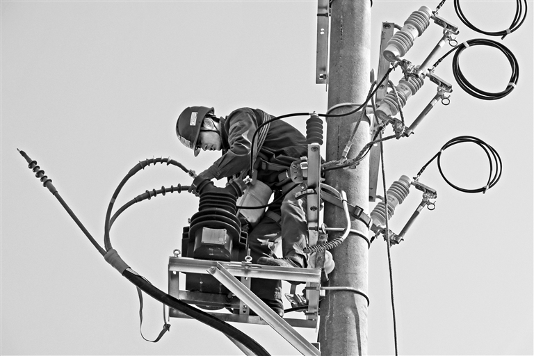 1月11日,在赣江新区新祺周片区,国网南昌市昌北供电公司员工对10KV荣欣北线南山支线线路进行技术改造,保障电网冬季安全稳定运行。
