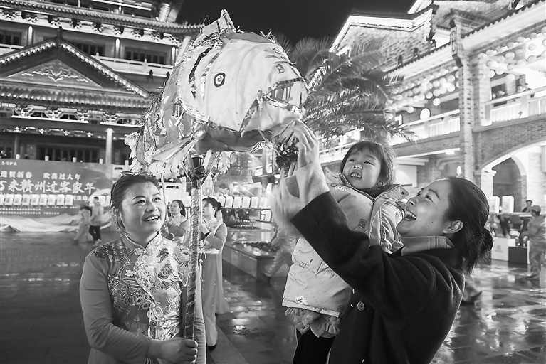 1月25日,宁都县州城文化街举行桥梆灯、鲤鱼灯非遗表演,吸引众多市民驻足观看。刘新权摄