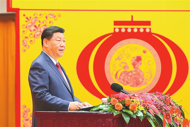 1月27日,中共中央、国务院在北京人民大会堂举行2025年春节团拜会。中共中央总书记、国家主席、中央军委主席习近平发表讲话。  新华社记者 李学仁摄