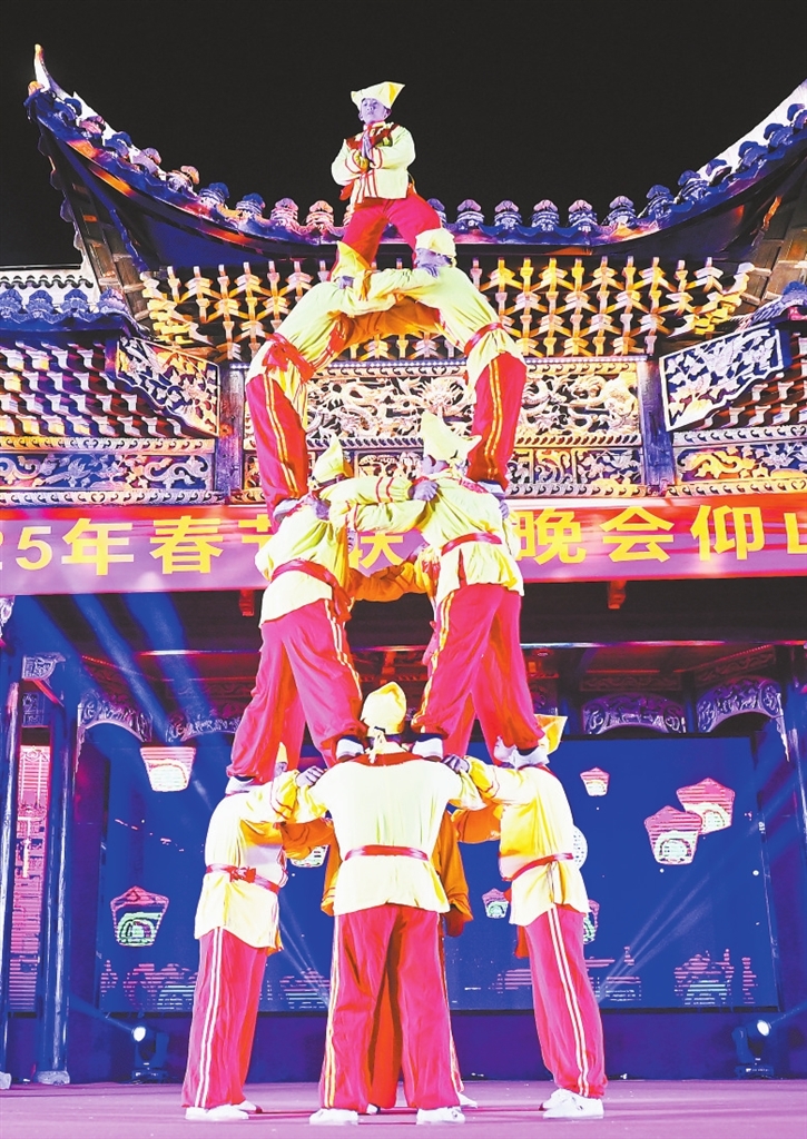 | 1月20日,在金溪县秀谷镇王家巷历史文化街区仰山广场举办的春节联欢晚会上,精彩的罗汉灯正在上演。特约通讯员 邓兴东摄 |