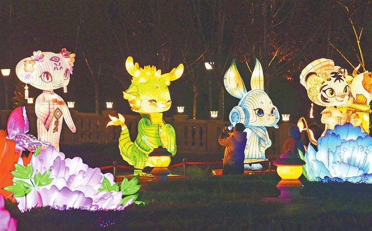 | 1月25日,赣州市章贡区方特东方欲晓主题公园内各式花灯流光溢彩、璀璨夺目,吸引众多游客前来赏灯游玩。 特约通讯员 胡江涛摄 |