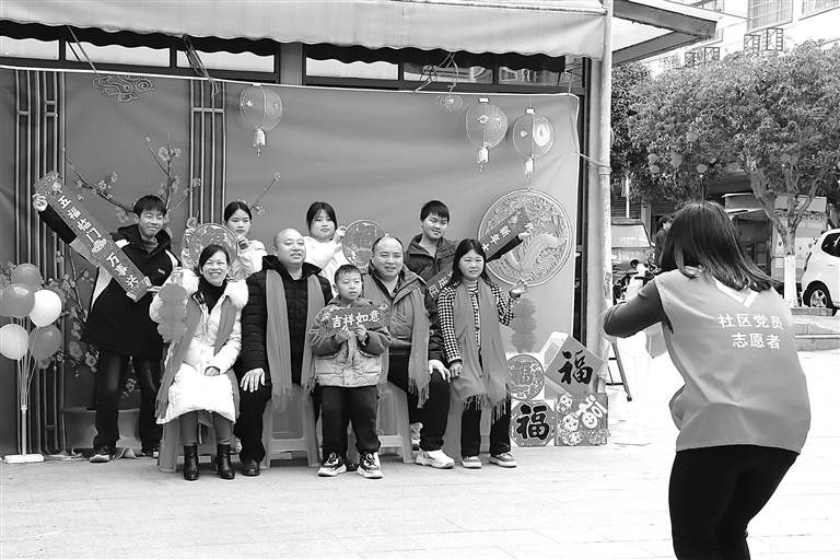 1月30日,在安远县欣山镇水背社区,社区党员志愿者为居民免费拍全家福。 本报全媒体记者 杨文斌摄