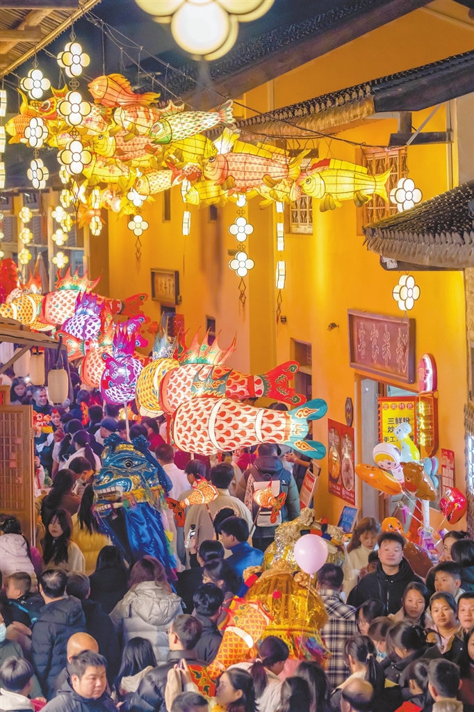 2月1日,定南客家古城景区迎来客流高峰,景区内游人如织,热闹非凡。