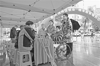 2月20日,南昌市湾里管理局在磨盘山公园举行残疾人专场招聘会,16家企业为残疾人求职者提供300个就业岗位。