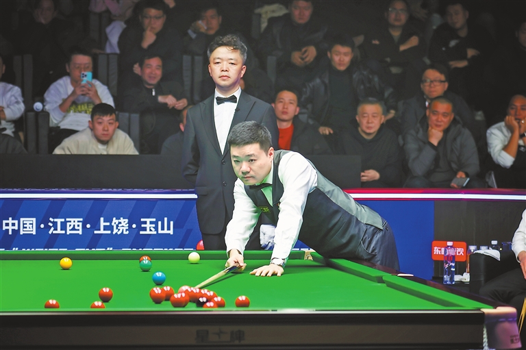 2月23日,2025“维德杯”斯诺克世界公开赛在玉山县体育中心举行,精彩赛事吸引了各地球迷前来观赛。上图为丁俊晖在比赛中。下图为贾德·特鲁姆普在比赛中。本报全媒体记者 徐 铮摄