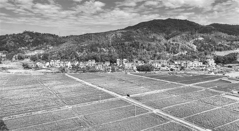 近日,在会昌县珠兰乡怀仁村,盛开的油菜花与房屋、青山相映成景,构成一幅生机盎然的田园画卷。
