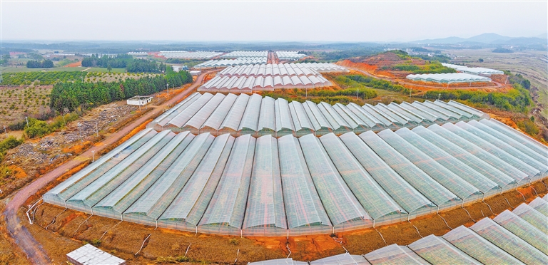 2月17日,金溪县左坊镇左坊村,一座座蔬菜大棚排列整齐,蔚为壮观。近年来,该县将杂草密布的丘陵,打造成大棚蔬菜基地,促进农业增效、农民增收。