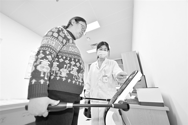 今年国家有关部门将持续推进“体重管理年”行动,引导医疗卫生机构设立体重门诊。图为3月13日,在南昌大学第二附属医院内分泌代谢科新开设的“肥胖减重中心”,医生为就诊者做体脂率等检测。本报全媒体记者 王蕴蓉摄