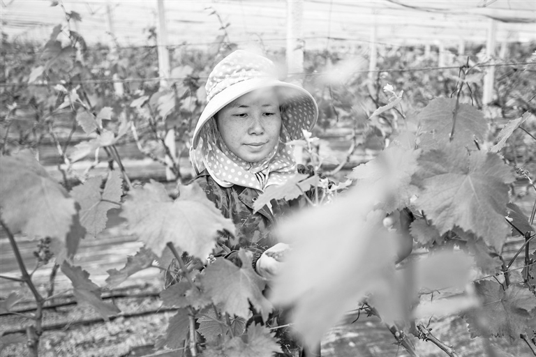 3月18日,农民在广西南宁市青秀区长塘镇双季葡萄产业园护理葡萄。 新华社发 (赵京武摄)