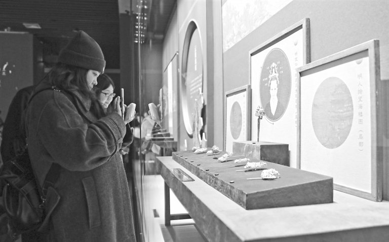 近日,参观者在省博物馆观赏明代首饰文物。据悉,此次明代首饰文物展共展出一级文物39件,二级、三级文物168件。本报全媒体记者 张翰林摄