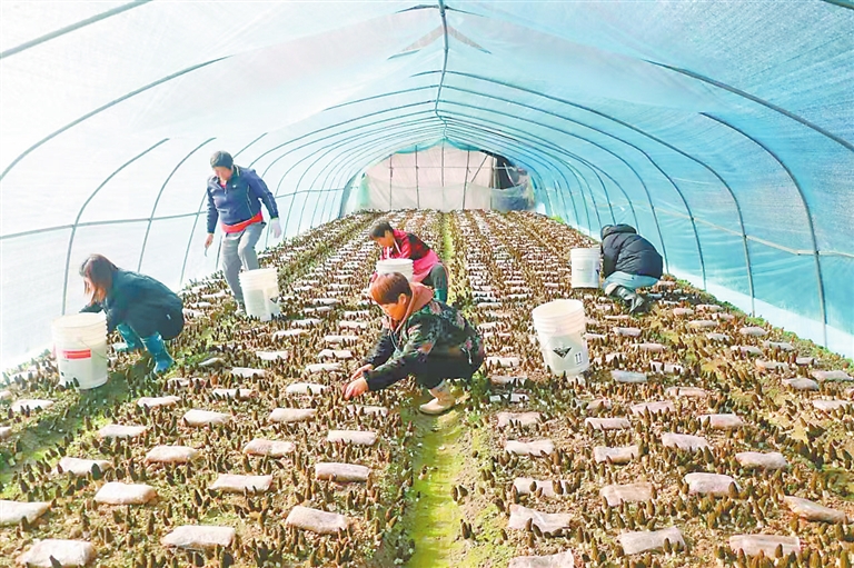 连日来,在德兴市李宅乡舒家村羊肚菌种植基地,村民们忙着采摘羊肚菌。天气晴好,该基地迎来采摘高峰期,省内外经销商争相订购。 本报全媒体记者 徐黎明摄