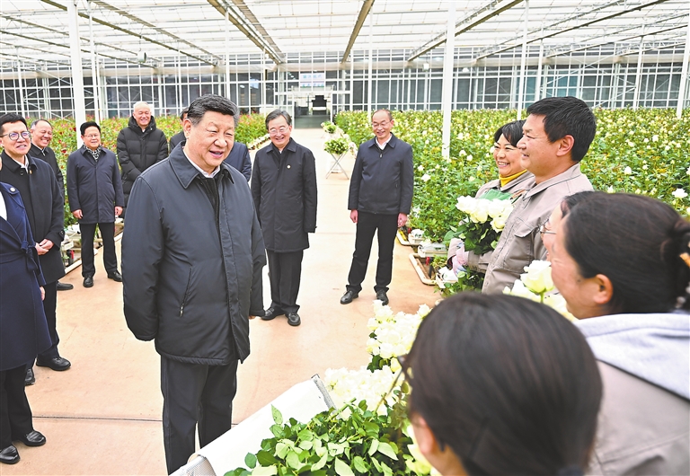 19日下午,习近平来到丽江现代花卉产业园。在展厅,他察看玫瑰、马蹄莲鲜切花品种展示,听取云南花卉产业发展情况介绍。在玫瑰花种植区,他了解智能温室无土栽培技术,同现场村民、技术人员亲切交谈。他还来到玫瑰花分级包装生产线,察看筛选、分级到包装、发货的全流程,对鲜切花通过物流及时外销表示肯定。习近平指出,云南花卉产业前景广阔,要着眼全产业链,从种业端、种植端、市场端不断深耕细作,让这一“美丽产业”成为造福群众的“幸福产业”。