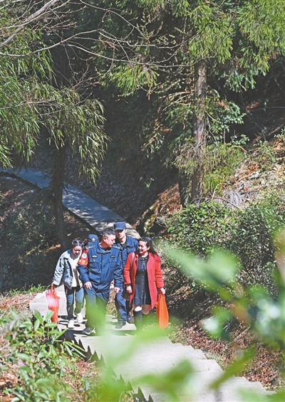 春日的武夷山国家公园,山花初绽,古树出芽。高大雄伟的桐木关扼赣闽咽喉,是游客打卡点和村民清明祭扫的途经点。3月18日一大早,武夷山国家公园江西管理局叶家厂保护站负责人郭洪兴,将北斗定位设备、红外相机电池、干粮、防火宣传单等巡护必备品装进随身携带的背包,带领队员前往桐木关,与武夷山国家公园福建管理局桐木保护站的同事会合,他们将进行联合巡护巡查及防火宣传工作。