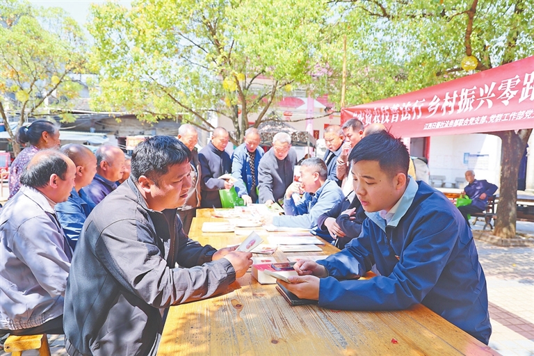 “土地流转要签合同,签合同时要注意期限和权责条款,遇到纠纷别慌,法律是咱的后盾!”在村中心广场,一场农业法律法规进乡村普法宣传活动也在同时进行,江西日报社法务部联合党支部的律师们耐心地为村民答疑释惑。现场还向村民发放了宣传资料,内容涵盖食品安全、动物疫病防治、种子选购、农药使用、农机补贴等方面。在法律咨询服务台,专业志愿者为村民提供法律咨询服务,解决村民们生产生活中遇到的法律问题。