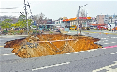 韩国首尔一路面出现塌陷