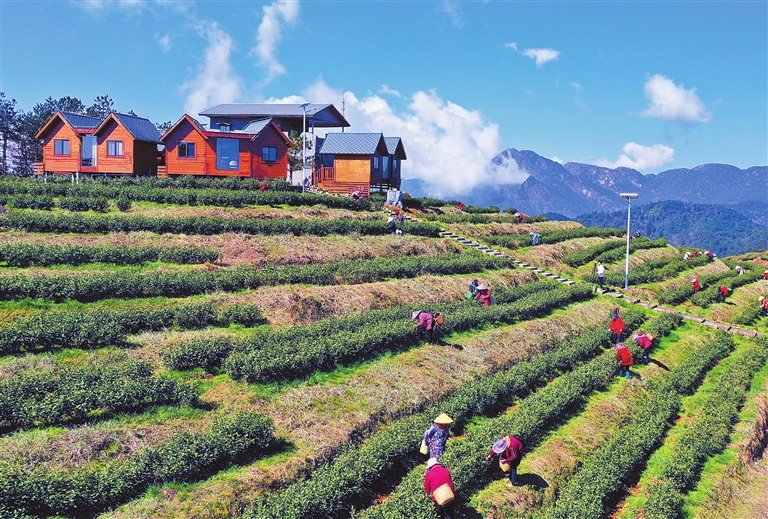近日,在崇义县上堡乡万长山高山茶场,茶农抢抓晴好天气采摘明前茶。特约通讯员 朱海鹏摄