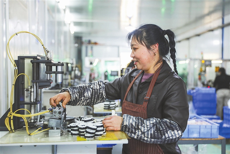 ▲3月21日,在万安县顺峰乡小微产业园高洋电机有限公司生产车间内,工人正铆足干劲赶制电机订单。