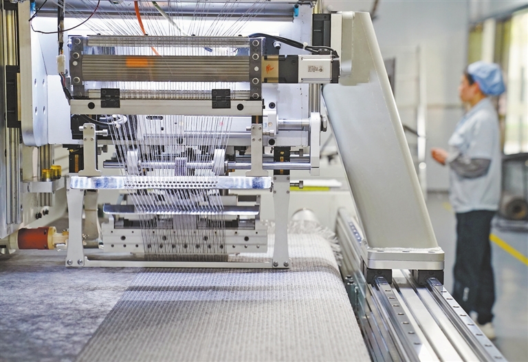 ◀3月26日,位于新余高新区的华腾地毯有限公司地毯生产车间,自动织布机正不停运转。据悉,该企业生产的地毯远销70多个国家和地区。