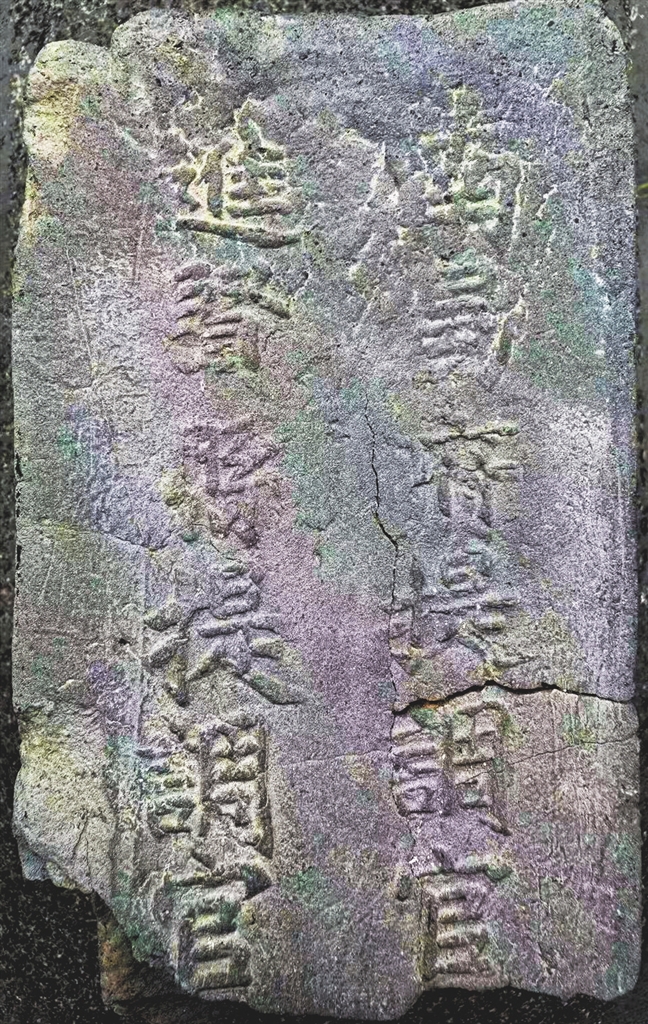 据有关专家考证,这半块“进贤”铭文砖(见下图),为明初修建江苏南京城墙、由江西进贤定烧的城墙砖。砖面呈青蓝色,半块残砖长22厘米,宽20厘米,厚11厘米,是明初南京城墙砖标准样式,即砖体长、宽、厚比例为四比二比一(该半块残砖只有完好整砖的一半左右)。