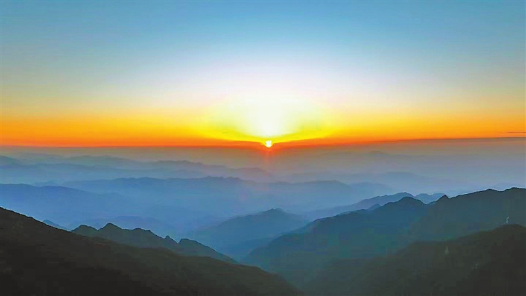 武夷山国家公园日出,磅礴云海如熔金倾泻。 本报全媒体记者王蕴蓉摄
