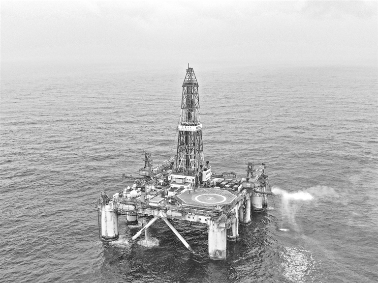 “南海二号”钻井平台在惠州19-6油田海域进行钻探作业。