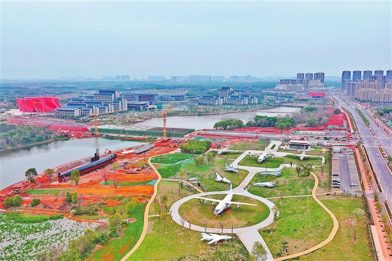 位于南昌市红谷滩区九龙湖区域的南昌军事主题公园项目建设已进入最后冲刺阶段,该项目分为轻武器馆及重武器室外展陈区域,其中轻武器馆预计4月份开馆。图为3月31日,航拍南昌军事主题公园项目重武器室外展陈区域,已有93件武器进场。本报全媒体记者 王蕴蓉摄