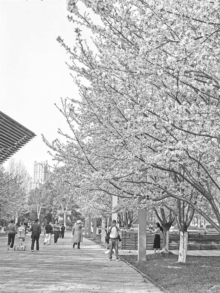 近日,上饶市博物馆附近的数十株樱花竞相绽放,吸引众多市民游客前来观赏。本报全媒体记者 余 燕摄