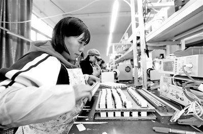 安福县持续加大惠企力度,助力企业把“微工厂”开进乡村、社区。图为近日,洋溪镇桥头村村民在当地一家电子厂忙碌。特约通讯员 刘丽强摄