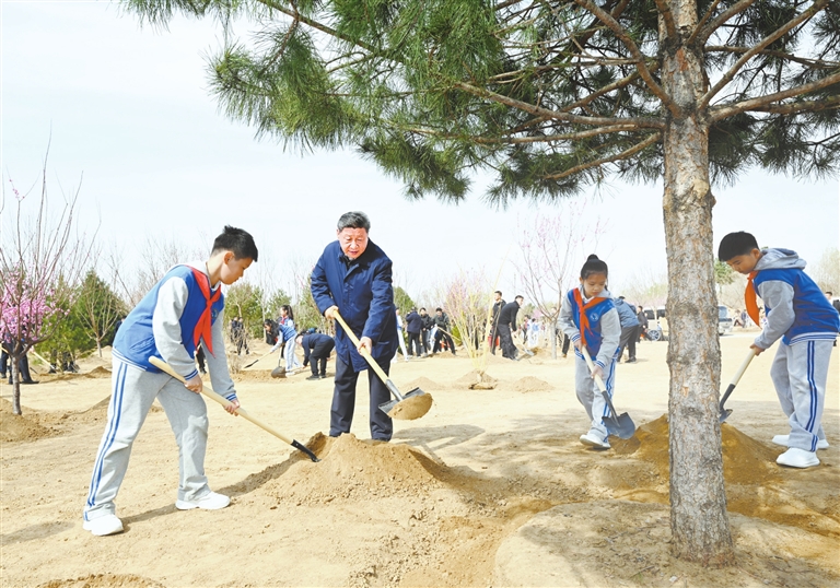 习近平强调,义务植树是全民行动,要一代接着一代干下去。要增强责任意识,创新参与方式,强化服务支撑,把这项活动扎实开展好,不断提高造林绿化实效。