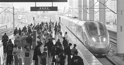 2025年清明假日运输从4月3日起至7日结束,为期5天。南昌车站预计发送旅客104.8万人次。图为4月3日,旅客在南昌西站站台等待高铁进站。