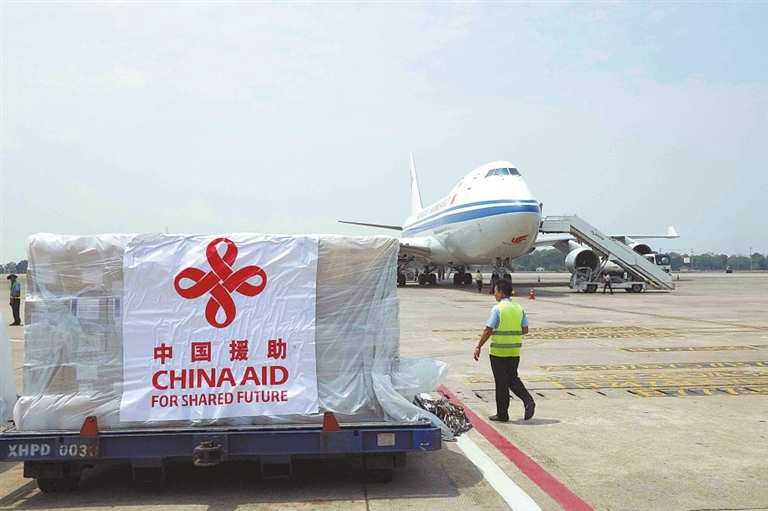 4月5日,中国政府向缅甸提供的第三批紧急人道主义地震救灾援助物资抵达缅甸仰光国际机场。新华社发(亨 曼摄)