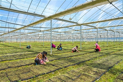 4月1日,南丰县桑田镇桑田村中药材种植基地,药农抢抓晴好天气,种植中药材土木香。