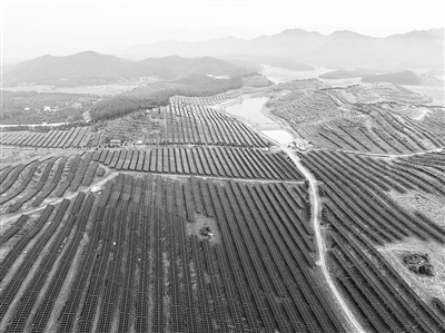 ◀近日,航拍峡江县水边镇分界村的光伏发电站,一块块光伏电板将太阳光转化为电能。本报全媒体记者 吴文兵摄
