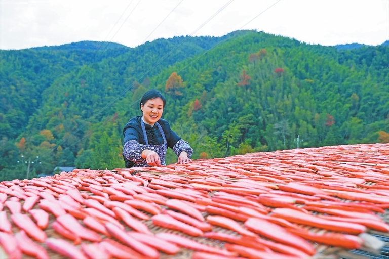 2020年,朱茶香和丈夫张显平从城市回到家乡发展。从做家常菜、腌腊味、晒小吃,到挖冬笋、榨茶油、乡间收鸡蛋等,夫妻俩分工明确,一个出镜、一个拍摄,农村生活的纯真和美好都被一一记录进他们的镜头。随着关注的网友越来越多,夫妻俩的日子也越过越红火,2024年农特产品销售额达600万元。“我生长在农村,是一名地道的客家人,通过视频带货的方式,能把家乡的好东西推广、分享出去,我感到很自豪。”朱茶香笑着说。