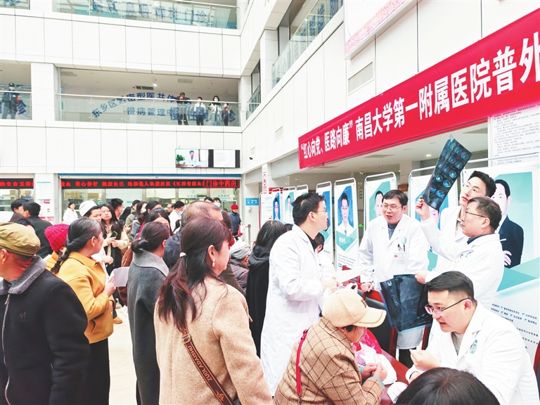 3月29日,江西日报“健康快车”联合南昌大学一附院普外科专家团队赴抚州市东乡区开展“党建创新领航、普外赣鄱知行”义诊活动。此次活动不仅有外科专家授课、义诊,还组织了复杂手术指导、学科讲座、查房业务指导等活动,进一步提高当地医院医护人员的医疗服务水平。当天,该科党员医护前往爱国主义教育基地开展了主题党日活动。陈 文摄
