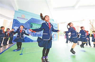 4月2日,赣州市章贡区第二小学东校区,学生正在进行跳绳运动。该小学通过引入智能机优化课间游戏,激发学生运动兴趣。特约通讯员 胡江涛摄