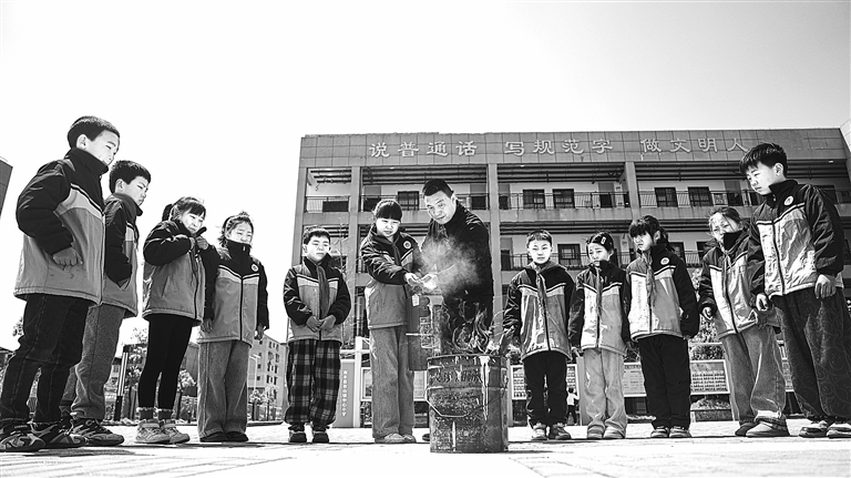 近日,南丰县市山镇专职消防队队员走进镇中心小学,开展消防演练和宣传活动,提升师生的消防安全意识。通讯员 李煜祖摄
