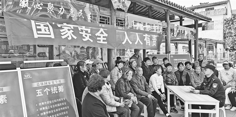 4月2日,在第十个全民国家安全教育日来临之际,鹰潭市余江区锦江镇邀请全国特级优秀人民警察、余江公安分局锦江镇派出所指导员黄水标,向居民宣讲国家安全知识。